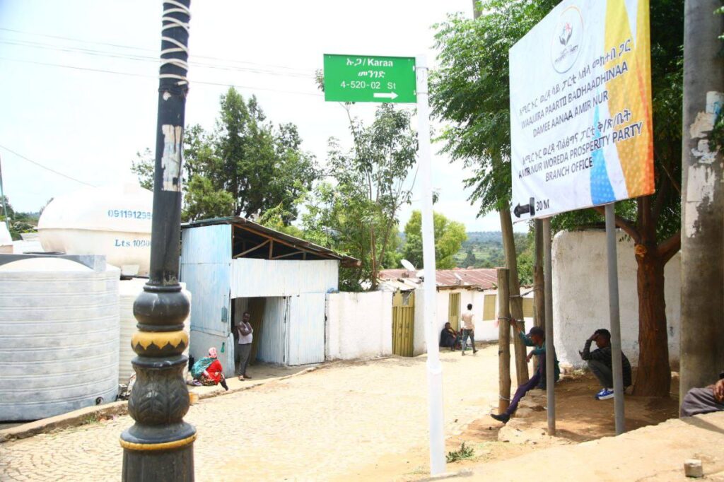 በተተከሉት ፖሎች ላይ የሰፈሮቹ ዲጂታል አድራሻ ቁጥር በቀላሉ ከሩቅም ከቅርብም በሚታይ መልኩ በሰማያዊ እና በአረንጓዴ ቀለም ታፔላ የታሰረ ሲሆን ሰማያዊው ታፔላ የሰፈር /Neighborhood / ቁጥሮችን የሚያሳይ ሲሆን በተጨማሪም በየሰፈሩ ውስጥ የሚገኙትን የቤት ቁጥር Range ከስንት እስከ ስንት እንደሚገኝ ይጠቁማል። አረንጓዴው ታፔላ በተመሳሳይ መንገዶችን አድራሻ የሚጠቁም ሆኖ ከ Principal Arterial ዋናው ከአዲስ አበባ ወደ ጂግጂጋ የሚሄደው የፌደራል መንገድ አንስቶ በከተማው ውስጥ የሚገኙትን ሁሉንም የመንገድ አይነቶች የሚያመላክት ይሆናል ። በመሆኑም ጎዳና/Avenue /፥ መንገድ /Street/፥ ንኡስ መንገድ /Sub Street/፥ የግል መንገድ/Private Road/፥ እንዲሁም የዘላቂ ያልሆኑ/Cul da sacs/ መንገዶችን የሚያመላክት ይሆናል።